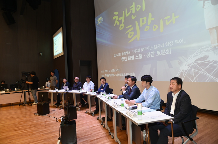 한편, 이번 ‘찾아가는 일자리 현장 투어’에서는 ‘소통·공감 토론회’ 외에도 ‘청년희망 채용박람회’도 진행됐다. 박람회에는 파주, 고양 등 경기도와 서울지역에 소재한 업체 중 청년 인력을 구하는 기업 30여 곳이 참가했다.