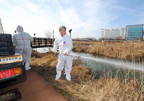 【경기인뉴스】임성택 기자 = 오산시(시장 곽상욱)가 최근 전국적으로 확산 조짐을 보이고 있는 AI(고병원성 조류인플루엔자) 발생 방지를 위해 총력을 기울이고 나섰다. 시는 지난 28일 농림공원과 직원과 방역차량 2대를 동원해 오산천 일대 전역에 대해 15톤 분량의 방역소독제를 살포했다. 이날 방역현장을 찾은 곽상욱 오산시장은 “최근 고병원성 조류인플루엔자가 전국적으로 확산 조짐을 보임에 따라 많은 시민들이 불안해하고 있다”며 “시에서는 각종 철새가 자주 찾는 오산천의 철저한 방역작업을 통해 관내 가금류 사육 농장에서 조류인플루엔자가 발생하지 않도록 최선을 다하겠다”고 말했다.