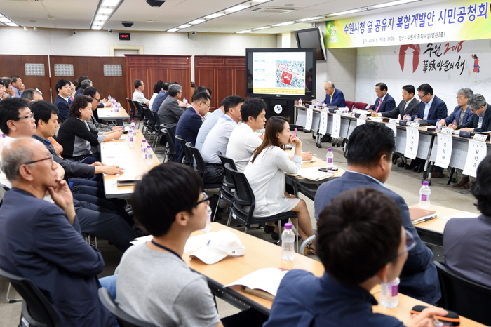 【시사인경제】수원시는 15일 시청 중회의실에서 '수원시청 옆 공유지 복합개발 타당성조사 및 기본계획수립 용역'에 대한 시민공청회를 개최했다.