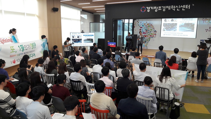 경기도는 22일 오전 10시 30분 판교 창조경제혁신센터에서 ‘공공기관 YOUNG IDEA’ 최종 오디션을 개최하고 본선 참가 10개 팀 가운데 ▲대상 : 한국은행과의 업무 협력을 통한 중소기업 및 소상공인 금융 애로 해소 ▲최우수상 : 민간&공공자원의 공유, 결합을 통한 혁신적 기술 창업 지원(한국나노기술원 김성수,최애리) ▲우수상 : 상호 소통기능이 구비된 도시 내 환기구 캐노피 설치 사업(경기도시공사 정원정) ▲ 장려상 : 코스트맵(Costmap. 분석지도. 원가절감기법 중 하나)을 활용한 건설원가 전산화(경기도시공사 노유창) ▲장려상 : 복지정보 공유 플랫폼 구축(최기현,김상훈,정인경) 등 5개 제안을 최종수상작으로 선정했다.