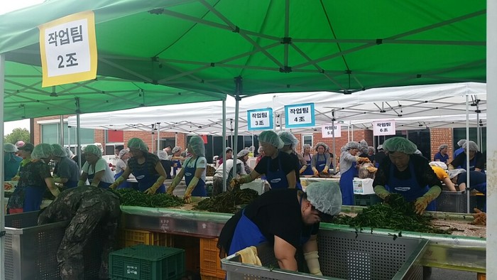 삼성전자가 후원하는 이번 행사는 42개동 지역주민 봉사자, 3군 사령부, 휴먼돌보미, 수원시휴먼서비스센터, 삼성전자 임직원 등 162명이 모여 여름철 열무김치와 오이지를 담갔다.