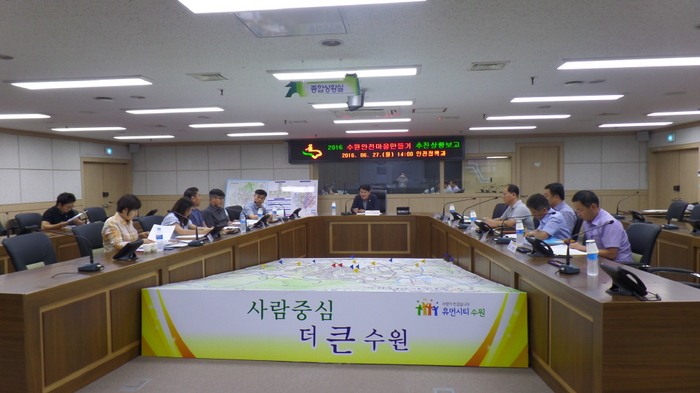 【시사인경제】수원시는 27일 재난상황실에서 2016년도 수원안전마을들기 추진상황을 중간 점검했다.