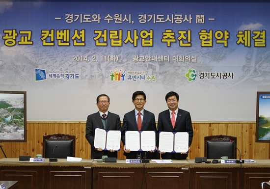 염태영 수원시장을 비롯해 김문수 경기도지사, 최승대 경기도시공사 사장은 이날 오전 10시 광교안내센터에서 ‘광교 컨벤션센터 건립 정상화를 위한 협약 체결식’을 갖고 컨벤션센터 건립사업 정상화를 위해 공동 노력하기로 협약을 체결했다. 이번 협약으로 14년째 표류해 온 광교 컨벤션센터 건립사업이 본격적으로 추진될 전망이다.