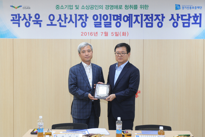 【시사인경제】곽상욱 오산시장이 중소기업과 소상공인의 애로사항 청취를 위해 지난 5일 경기신용보증재단(이하 경기신보) 1일 명예지점장으로 위촉을 받았다,